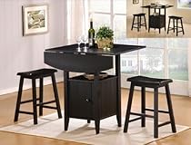 Table features a storage cabinet and drop down leaf that can save more space when needed.
